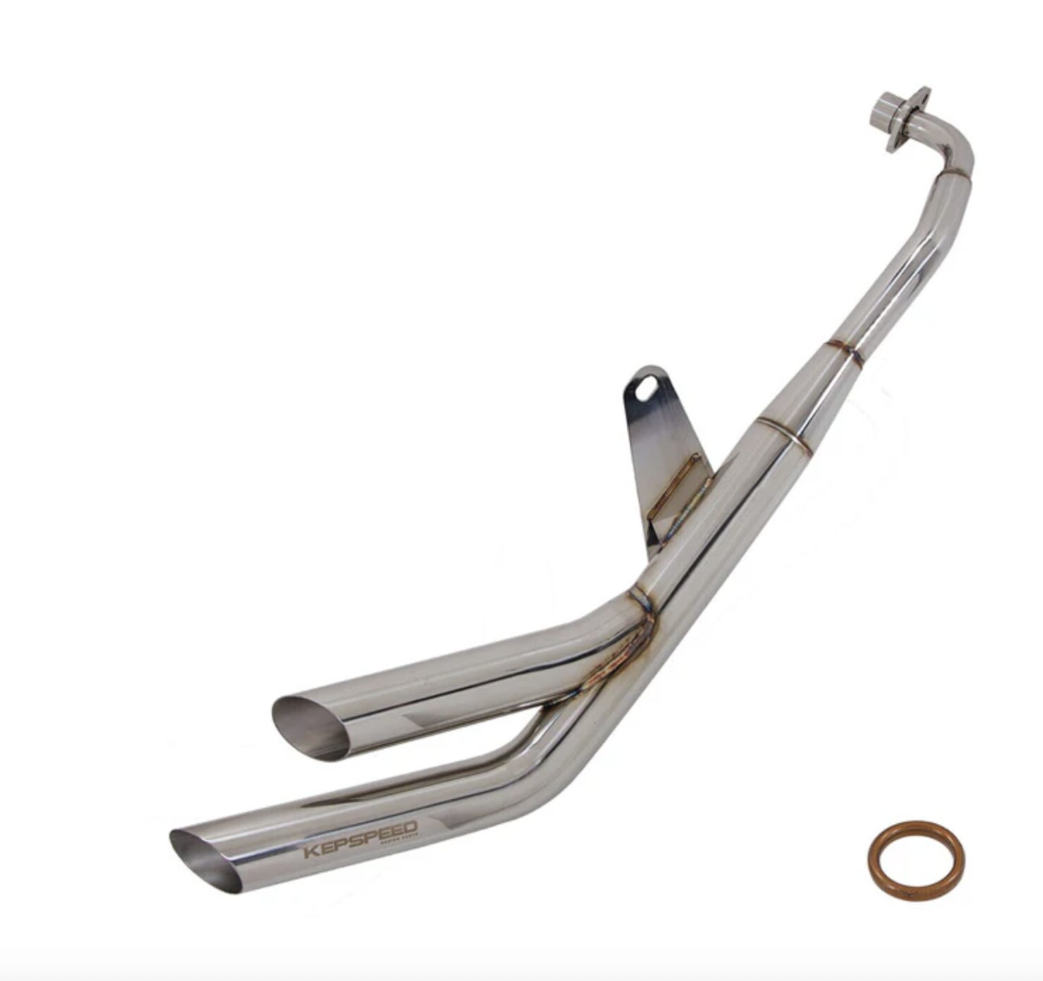 Uitlaat sidepipe dubbel onderliggend.